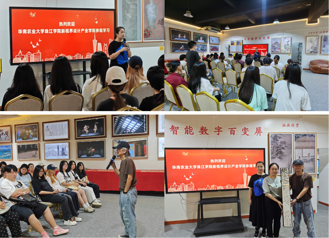 2025年10月17日,华南农业大学珠江学院新视界设计产业学院组织师生代表李喻军教授、梁珊珊老师和视传2305班学生,赴广州市岭美文化科技有限公司及其荔湾区图书馆岭美文化分馆,开展了一场集产业观摩、美学熏陶与文化传承于一体的深度研学活动。