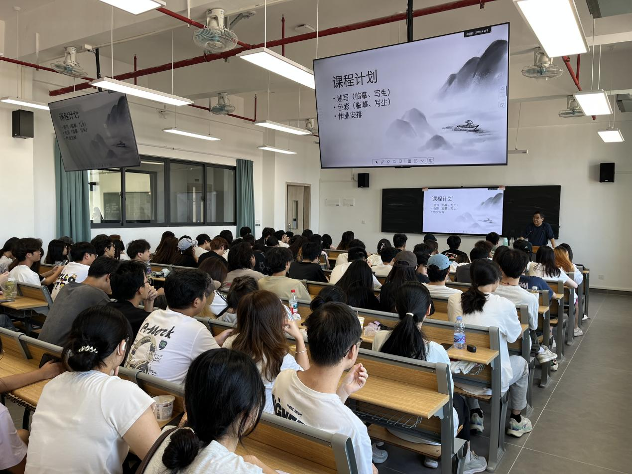 为提升同学们的写生水平与活动质量,何新闻教授为学生开展结合本次活动的写生专题讲座。何教授结合学生作品,深入浅出地讲解了乡村题材艺术创作的要领,引导学生思考如何将视觉元素与地域文化内涵相结合。
