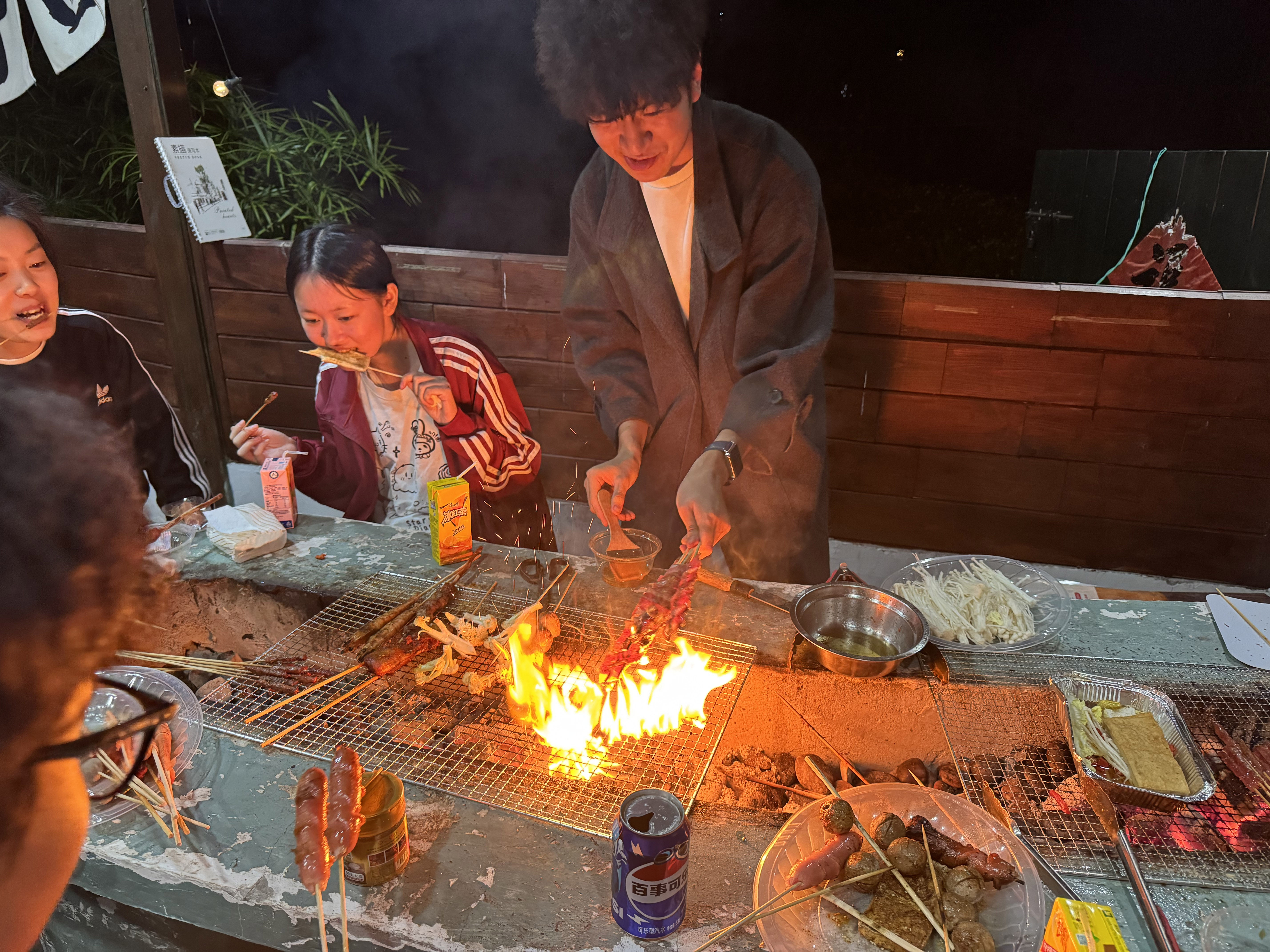 在充实的学习调研之后,师生们还在夜晚一同参与了烧烤活动,体验了劳逸结合的乐趣。大家分工协作,生火、备料、烤制美食,现场弥漫着诱人的香气。