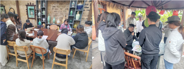 活动期间,学生们分组走访了莲麻村的古镇老街、传统建筑群和周边自然景观。在指导老师的带领下,他们有序开展风景色彩、古建筑速写、小景特写等多类绘画创作。除了艺术写生,师生们还进行了田野调研,他们走访村民,通过深度访谈和问卷调查等方式,系统梳理莲麻村的历史文脉、生态资源和文化遗产。