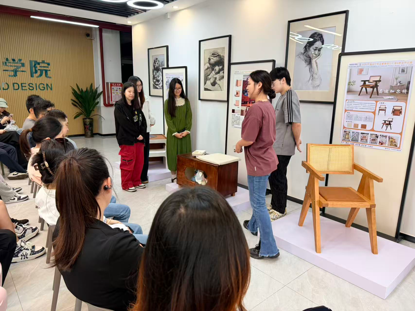 论证会后,领导与专家移步展厅,结合会议提出的数字交互、智能产品等方向,对学生作品进行点评,强调虚实融合的设计思维与智能体验创新,鼓励学生在传统功底上拓宽前瞻视野,激发符合时代需求的创新潜力。