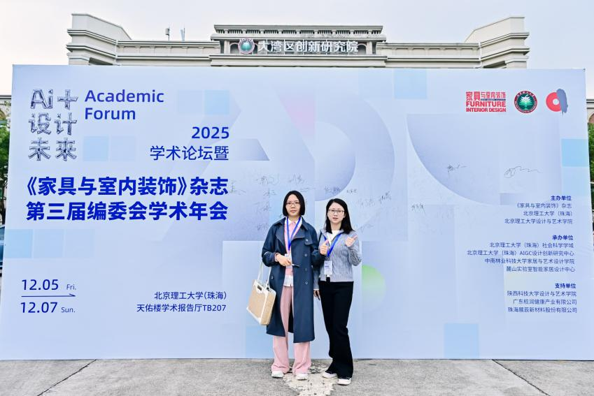 由全国中文核心期刊《家具与室内装饰》杂志联合北京理工大学(珠海)、北京理工大学设计与艺术学院主办的“AI+设计未来”学术论坛暨《家具与室内装饰》杂志第三届编委会学术年会,于2025年12月5日至7日在北京理工大学(珠海)举行。为提升教师教学水平,在华南农业大学珠江学院新视界产业学院的大力支持下,组织艺术设计学院环境设计教研室教师龙珍文、李文赴珠海参加本届论坛研讨。本届论坛以“AI+设计未来”为主题,聚焦人工智能技术对设计学科、教育模式和创新实践的深远影响。