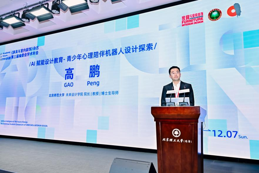 北京师范大学未来设计学院院长高鹏教授分享《AI赋能设计教育—青少年心理陪伴机器人设计探索》,展示如何将生理感知、情绪识别与智能对话技术融入心理关怀产品设计,回应数字化时代青少年心理健康需求。