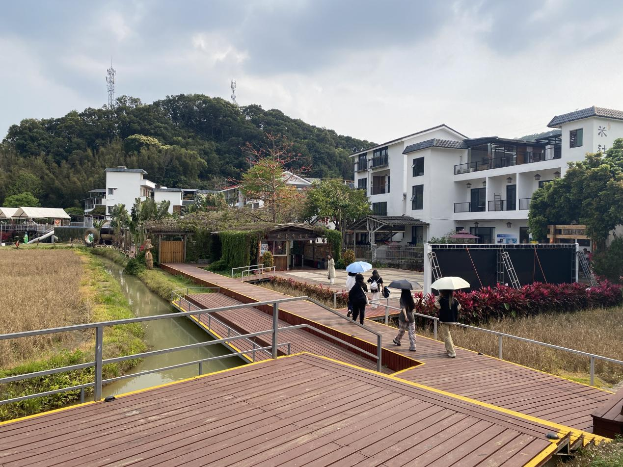 随后,团队抵达乡村振兴示范点米埗村。这里白墙黛瓦的民居与流溪河、稻田构成优美画卷。师生们重点解析了该村在整体规划、人居环境提升及产业融合方面的设计实践。通过考察村内道路、公共广场、滨水空间及特色民宿集群,同学们直观理解了设计在平衡生态保护、旅游发展与提升村民幸福感中的关键作用。环境设计2303班张同学表示:“米埗村案例表明,好的乡村设计是因地制宜、以人为本的,这对我们的未来设计实践极具参考价值。”