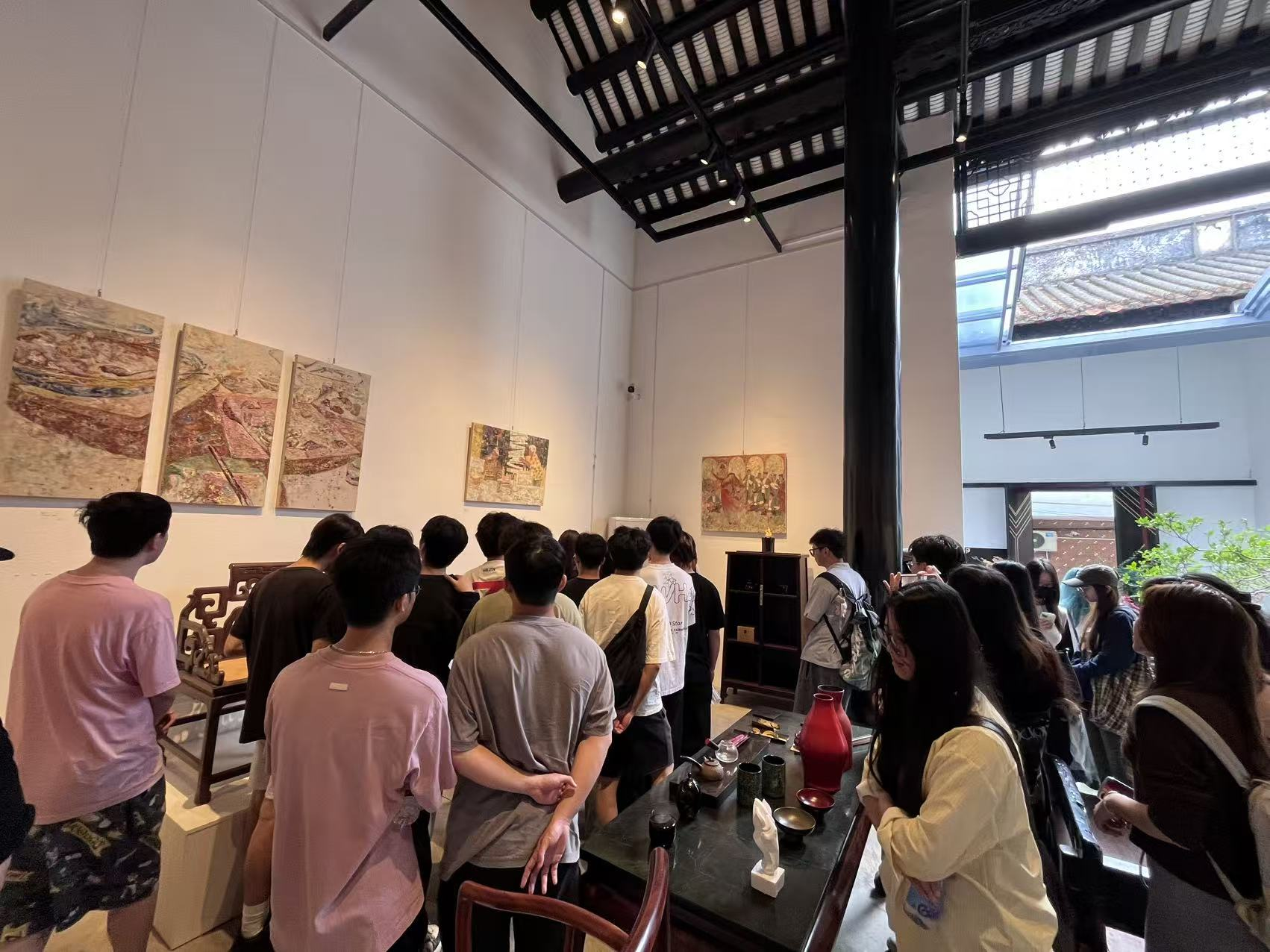 活动于上午8:30正式开始,师生集体从学校出发,乘车约一小时抵达首站——广州穗泰堂艺术空间。在艺术空间内,师生们观摩了各类漆艺作品,从传统的屏风、器皿到现代的艺术装置,感受了大漆艺术在形态、色彩与质感上如何实现传统技法与现代审美表达的融合。