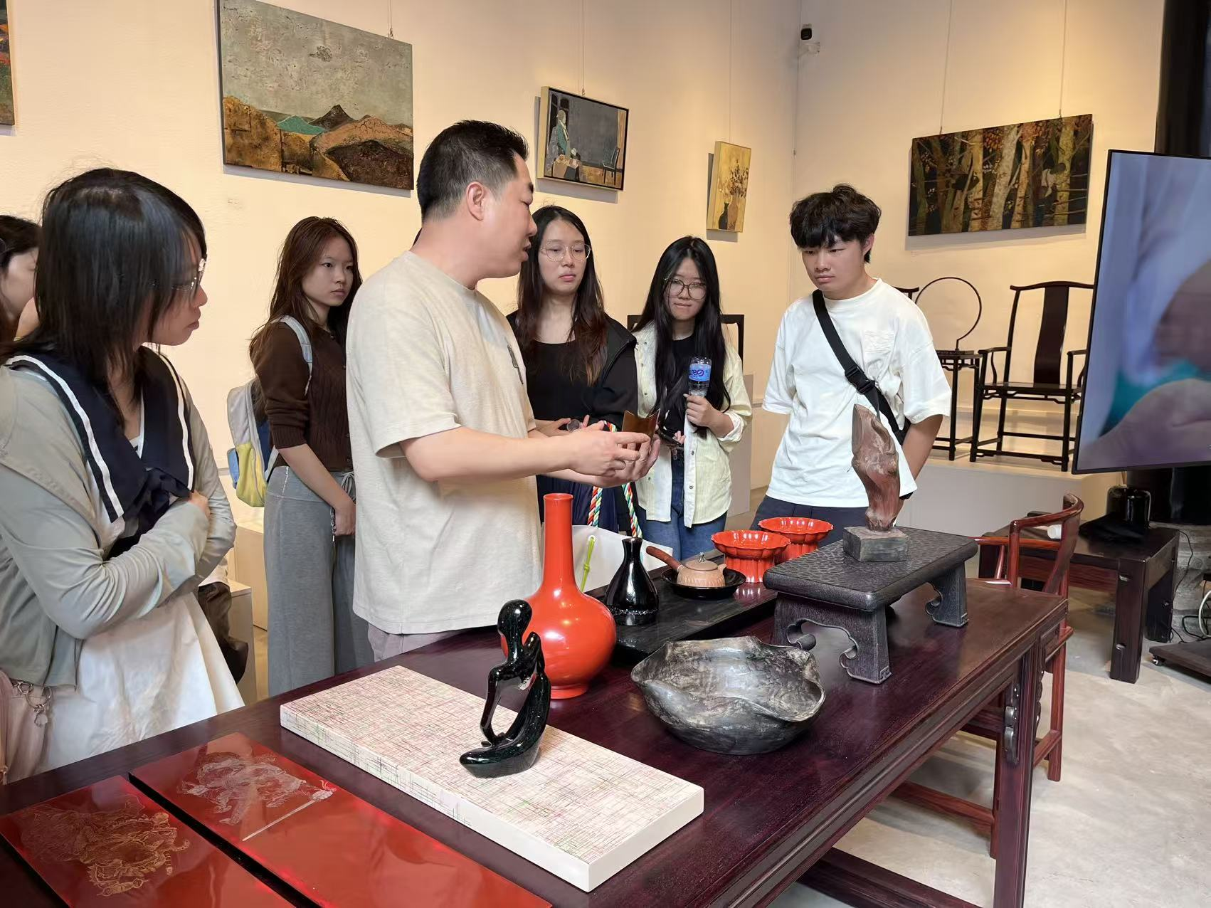 整个活动行程安排紧凑有序,于17:30顺利结束。本次活动不仅是艺术设计学院深化校企合作、推动产教融合的重要举措,也为师生提供了一次难得的跨出课堂、走进行业、融入文化的学习机会。通过实地走访、工艺体验与文化调研,师生们对大漆这一非物质文化遗产的工艺体系、创作思维及当代发展有了更为立体而深刻的理解,也为后续相关课程创作与项目设计积累了宝贵的现场素材与灵感来源。